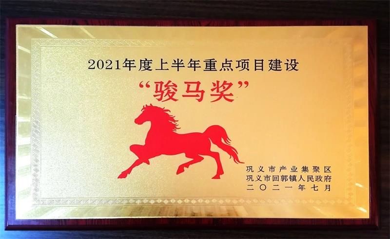 為貫徹落實(shí)“萬人助萬企”活動安排,推動我鎮(zhèn)經(jīng)濟(jì)高質(zhì)量發(fā)展和推進(jìn)重點(diǎn)項(xiàng)目落地實(shí)施,2021年7月17日上午,鞏義市產(chǎn)業(yè)集聚區(qū)高質(zhì)量發(fā)展暨項(xiàng)目建設(shè)推進(jìn)會在回郭鎮(zhèn)政府召開?;毓?zhèn)全體班子成員、規(guī)上企業(yè)負(fù)責(zé)人、機(jī)關(guān)中層及鎮(zhèn)直部門等200余人參加了此次會議和重點(diǎn)項(xiàng)目觀摩活動。公司被授予“2021年度上半年重點(diǎn)項(xiàng)目建設(shè)駿馬獎”。